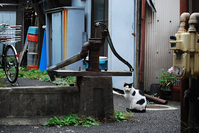 一定の距離感を保つものの、常にカメラ目線をくれるし、井戸との位置関係もベストポジションについてくれるしで、フォトジェニックな猫でした。