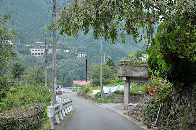遊歩道は森の中を突き進むコースなのですが、しばらくすると舗装道路となって集落が見えてきます。